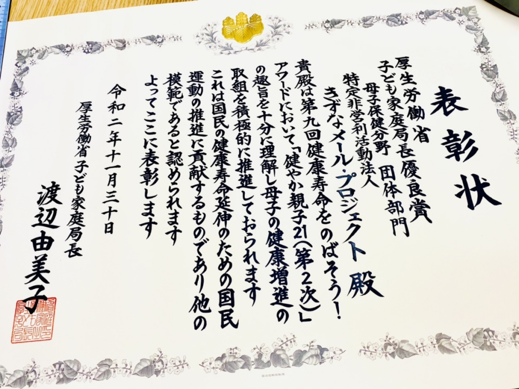 【お知らせ】厚生労働省子ども家庭局長賞 団体部門 優良賞 受賞|第9回 健康寿命をのばそう!アワード<母子保健分野>
