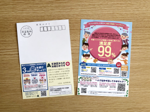 また、ハガキにはきずなメール・プロジェクトの「大丈夫三兄弟」のイラストを使用させていただき、親しみやすい雰囲気で区の相談窓口や、お家で楽しめる手遊び動画のご紹介をあわせて掲載させていただきました。