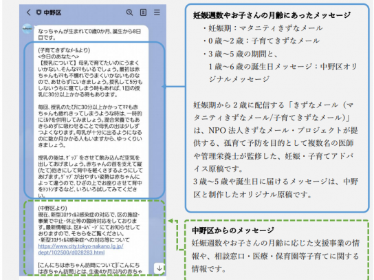 これらを踏まえ、幼い子どもを育てる親や出産を迎える妊婦などの不安や孤独感を軽減し、安心して出産や子育てができるよう、子育て支援アプリの機能を拡充し、「おおがき子育て応援メール」を導入しました。