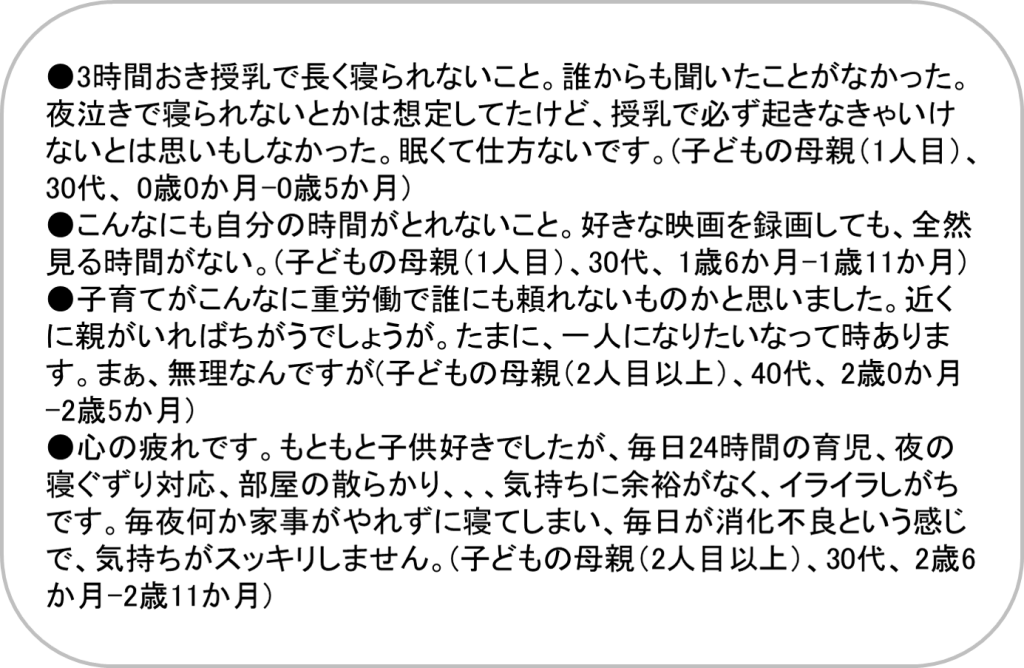 この質問では「負担の重さ」が14.8%回答があり、下記はその回答の一部で様々な状況が伝わってきます。