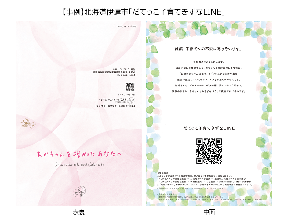 こちらも、自治体の皆様が確実に妊婦さんに出会える母子手帳交付の機会に手渡しするものです。