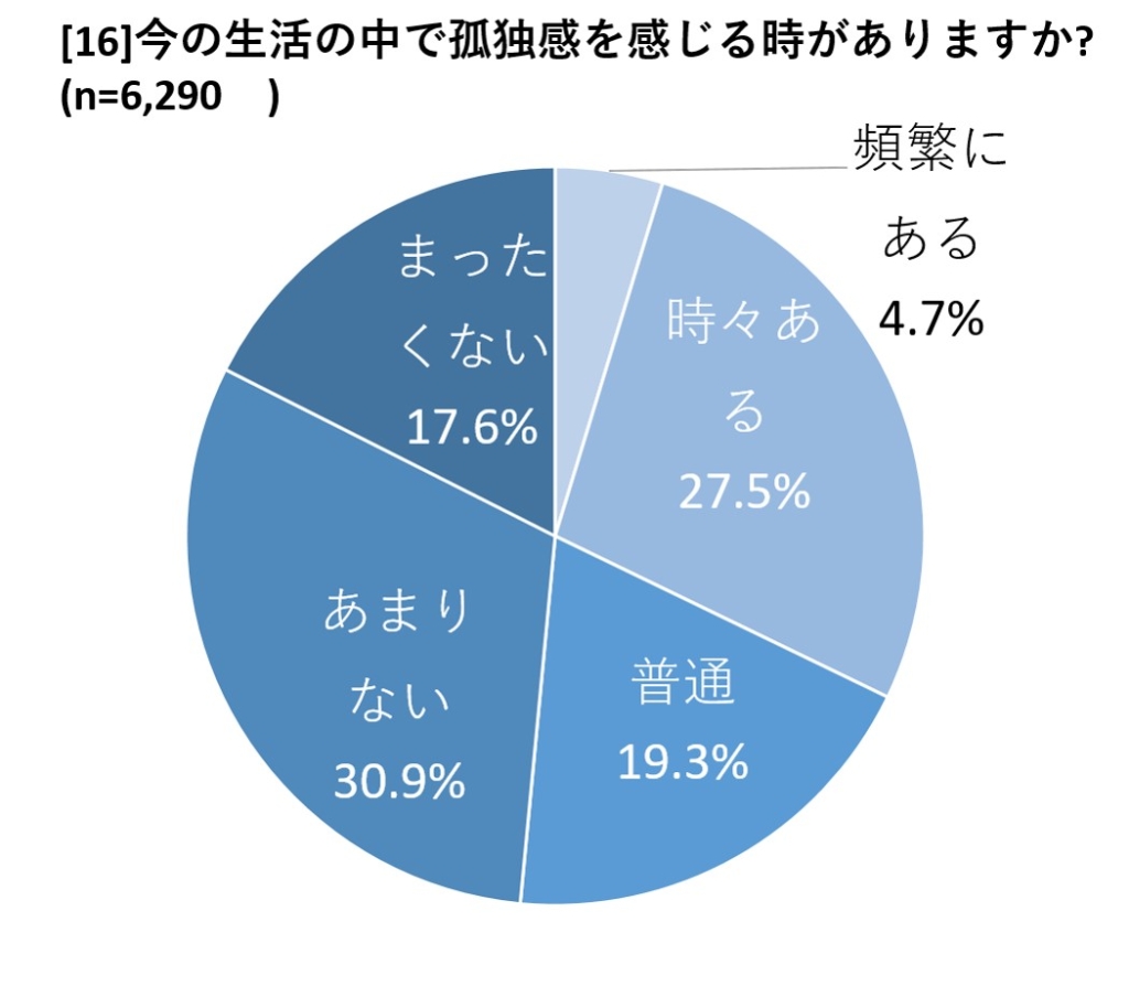 アンケートでは、回答者自身の心身の状態に関する「広聴的設問」も設定。「今の生活の中で孤独感を感じる時がありますか?」という質問に対して「時々ある」が27.5%、「頻繁にある」が4.7%と約3割が孤独感を感じていることがわかりました(子育て期 n=6,290)。