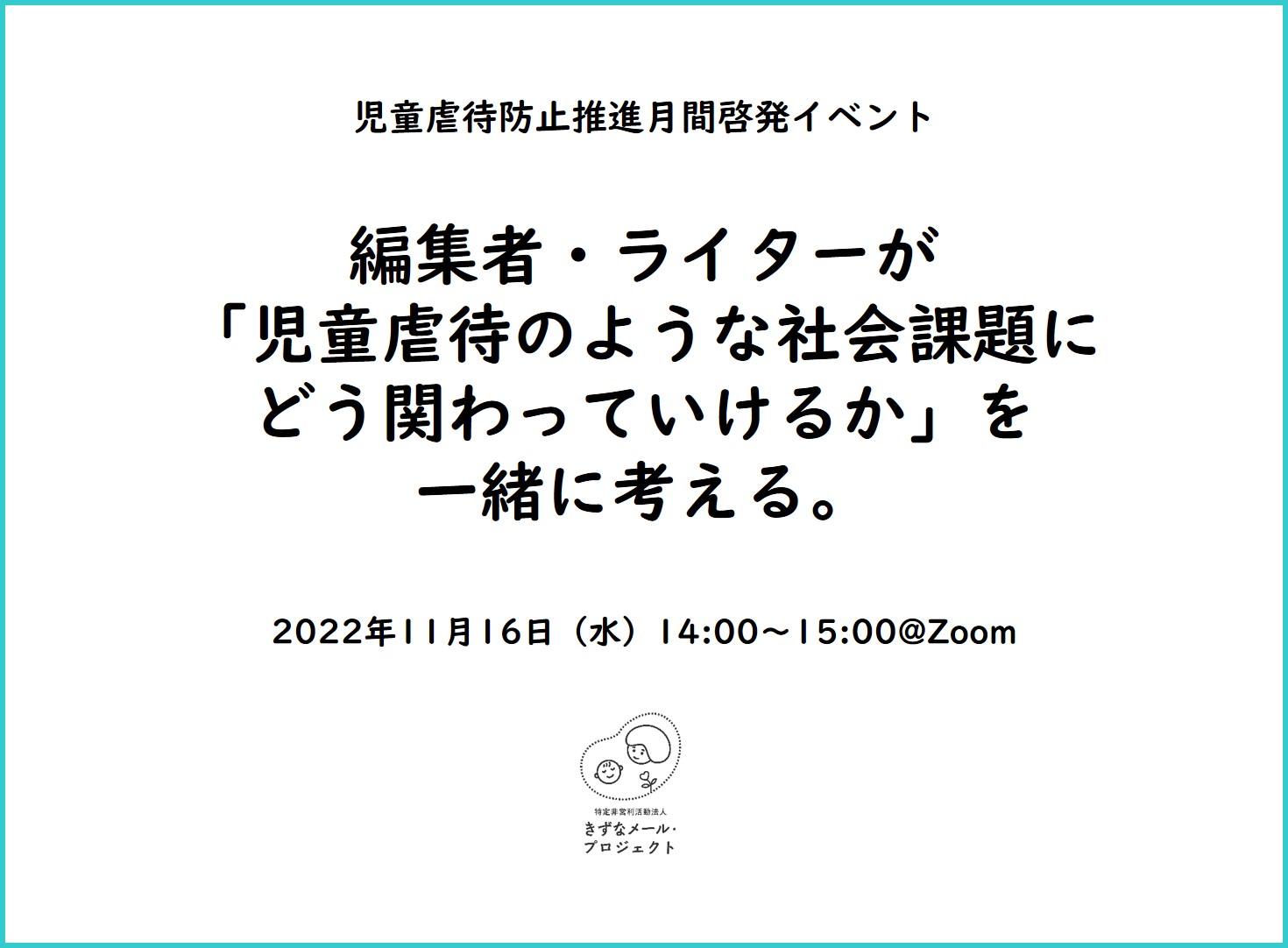 編集者・ライターが「児童虐待のような社会課題にどう関わっていけるか」を一緒に考える。(児童虐待防止推進月間啓発イベント)