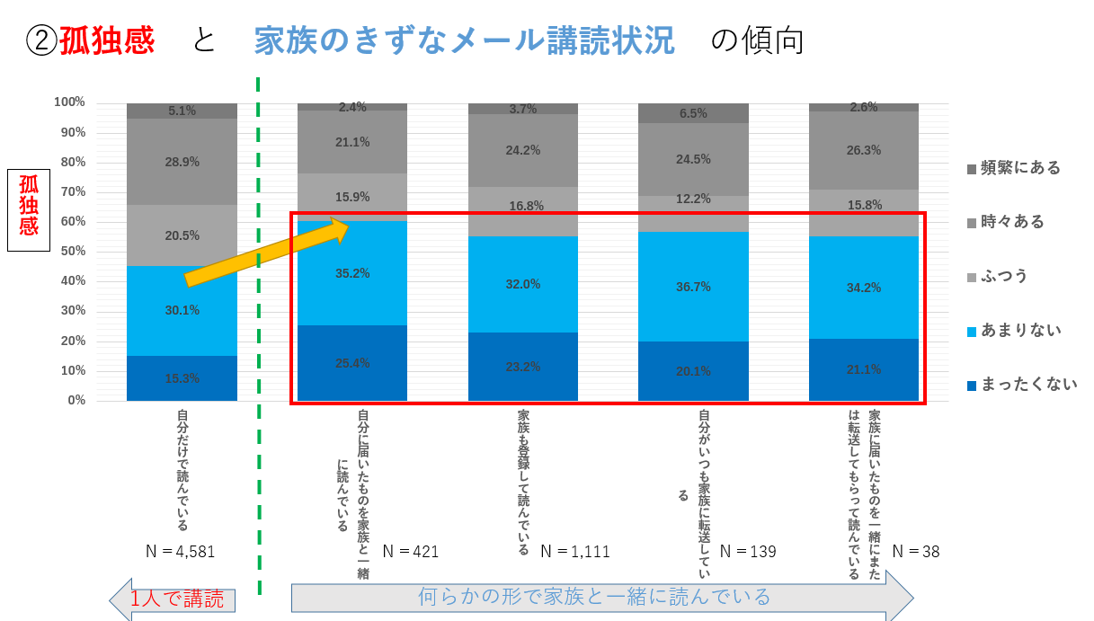 『きずなメールを家族と一緒に読む人ほど、「孤独感を感じていない」という傾向にある』について