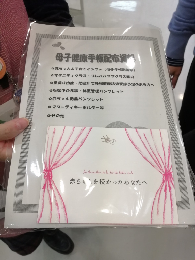母子手帳交付時にお渡しされている書類の中の一番上におめでとうカードを入れてくださっていました。