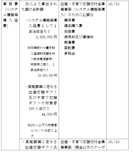 (1)都道府県分は事務費(システム構築等導入経費)のみ対象。