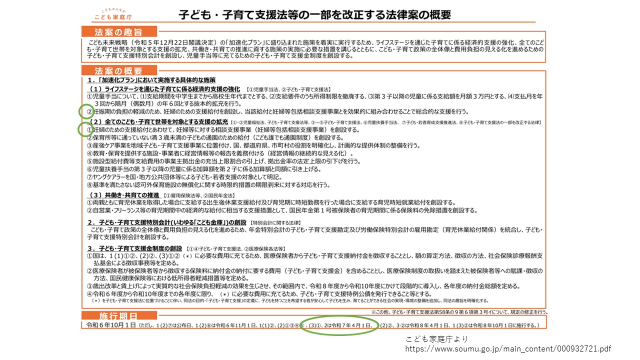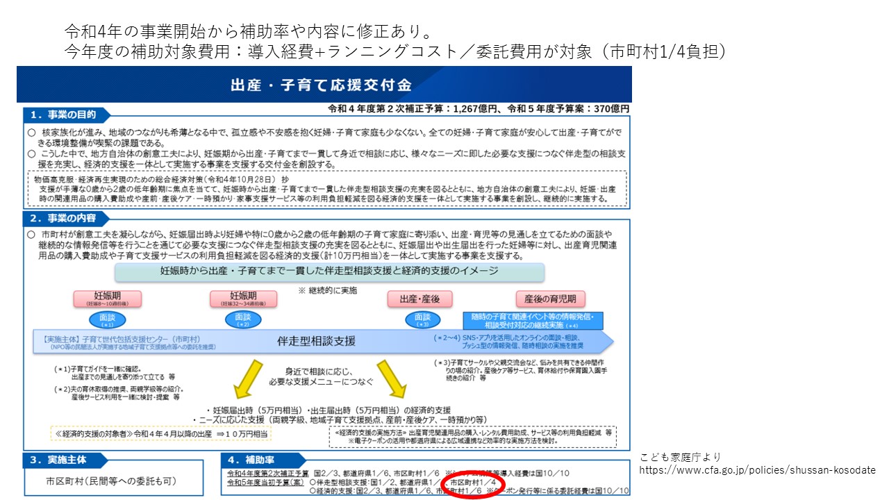 予算事業として始まった出産・子育て応援交付金が、法定事業を目指しているところに、政府や関係者の本気度が伝わってきます。