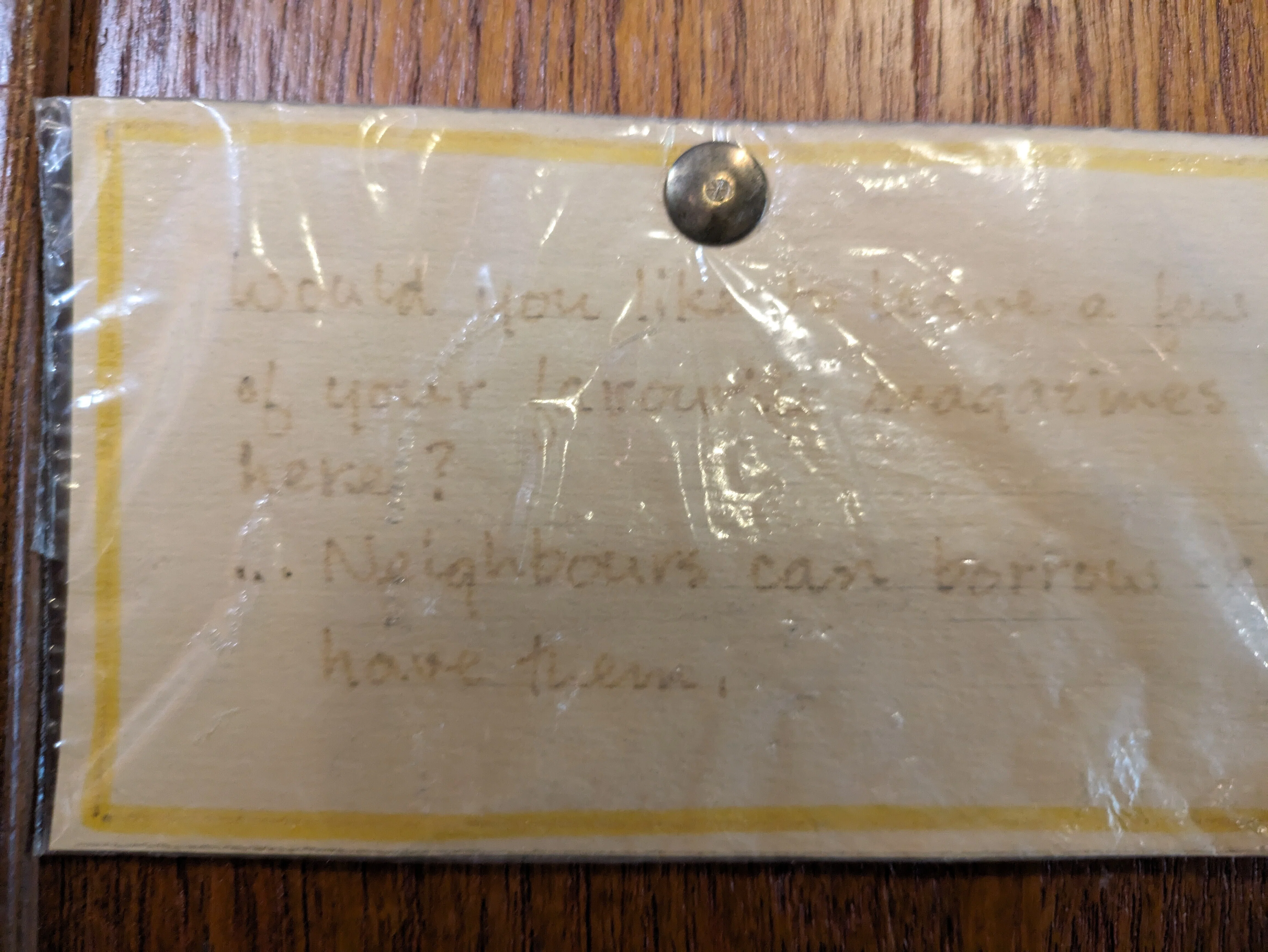 読みたい本はあるかい?ご近所さん、読んでいいよ!というようなことが書いてあります。