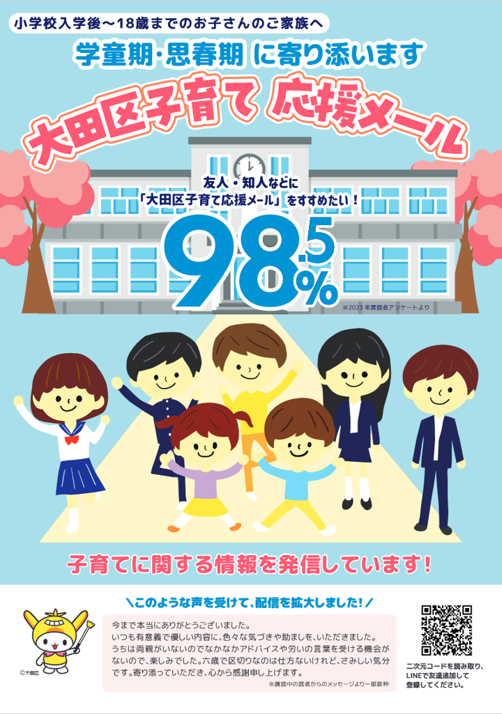 東京都大田区で「大田区子育て応援メール」として配信している「学童期・思春期メッセージ」をバージョンアップしました。