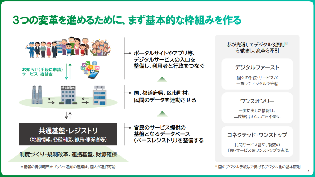これら3つの変革を推進するために、共通基盤・レジストリの構築が進められました。