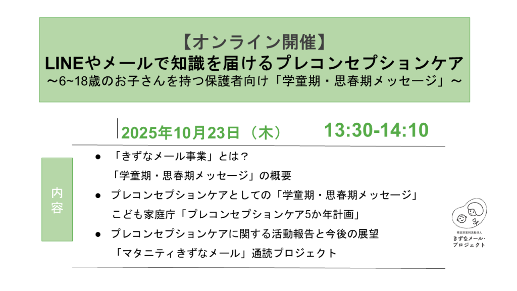 【10/23オンライン開催】LINEやメールで知識を届けるプレコンセプションケア 6~18歳の保護者向け「学童期・思春期メッセージ」とは?