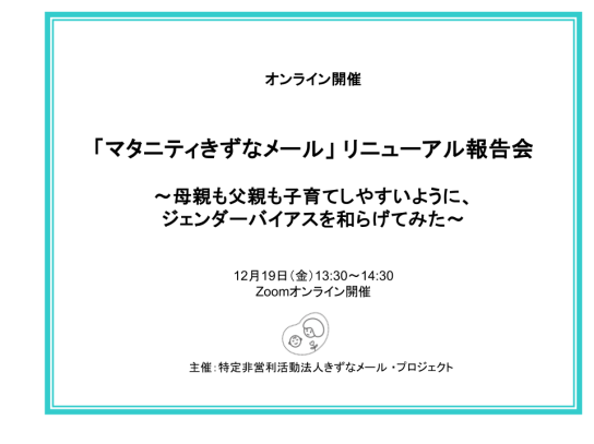 子育てにおけるGender equalityとは? 「きずなメール基金」による「マタニティきずなメール・リニューアル・プロジェクト」を開始しました。
