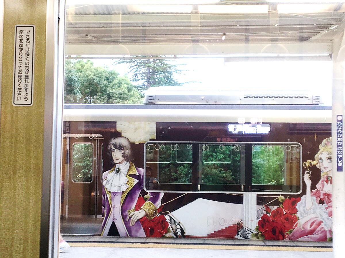 ↓窓の外は宝塚市全開。有名な漫画のイラストが。