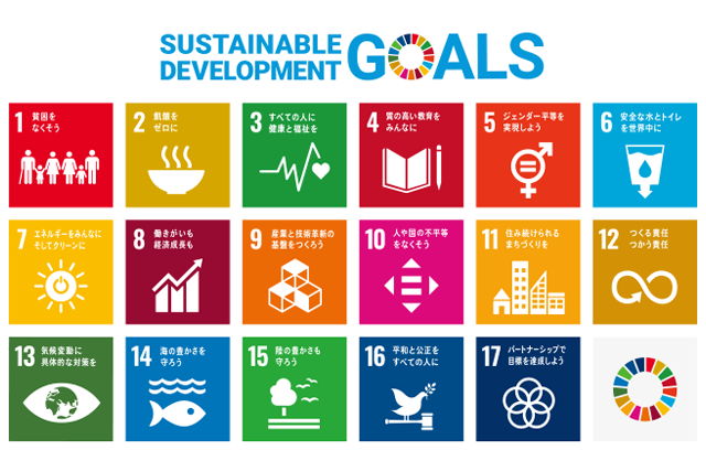 SDGsとは、Sustainable Development Goals(持続可能な開発目標)の略称で、2015年9月に国連サミットで採択された、世界共通の目標です。