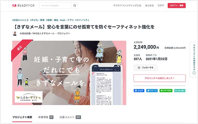 207名という多くの方の応援を力に、「マタニティきずなメール」「子育てきずなメール」合わせて約540通を、「やさしい日本語」にすることができました。あらためて御礼を申し上げます。「きずなメール」は、テキストメッセージの汎用性を強みと捉え、団体で掲げたvision、missionのもと、展開してきました。今回の「やさしい日本語」作成を通し、コンテンツ担当として再認識したのは伝えたい相手を知ること、伝えるスキルを磨くこと、伝えたいことを持ち続けることの重要性です。今後は「やさしい日本語版」をひとりでも多くの方に読んでもらえるよう、引き続き皆さまからの応援を力に、取り組んでまいります。